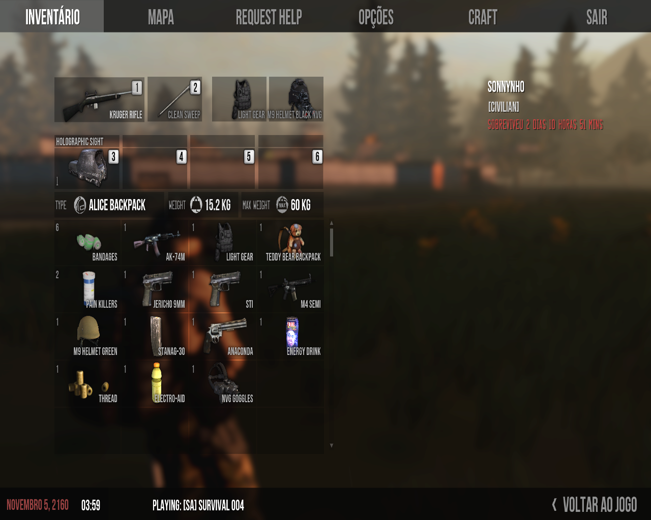 — I para abrir o inventário, M para abrir o mapa e N para ativar a visão noturna (se você estiver com algum capacete de tipo NVG — Night Vision Googles);